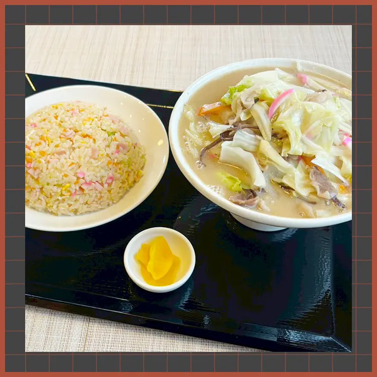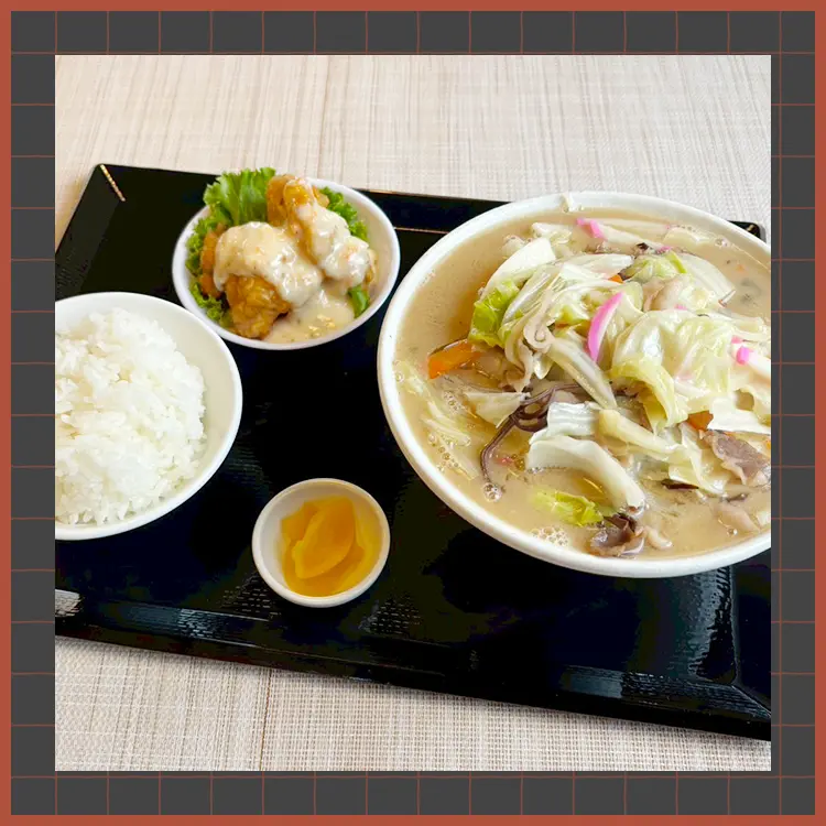 ボリューム満点!ちゃんぽんとチキン南蛮で大満足の組み合わせ。